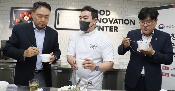 롯데마트와 농진청은 이를 기념하고자 지난달 30일 롯데마트 서울 본사에서 상품 품평회를 개최했다. 이날 강성현 롯데마트 대표와 조재호 농진청장은 개발상품을 시식·평가한 후 제타플렉스 잠실점에서 판매 상품을 살펴봤다. 판매 상품 평가와 함께 판매 촉진 등을 위한 상호 협력방안도 모색했다.