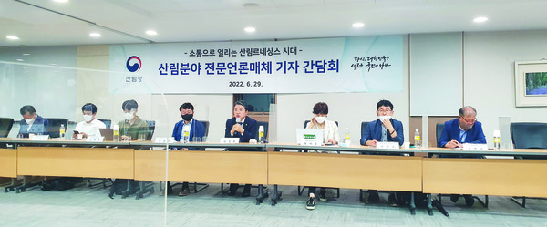 남성현 산림청장은 지난달 29일 서울 산림비전센터에서 전문지 기자간담회를 갖고 온라인 산림경영지도 확대, 산불예방활동 강화, 소나무재선충병 감염목 연 10만 그루 이하로 억제·관리 등 산림 정책 현안에 대한 입장을 밝혔다.
