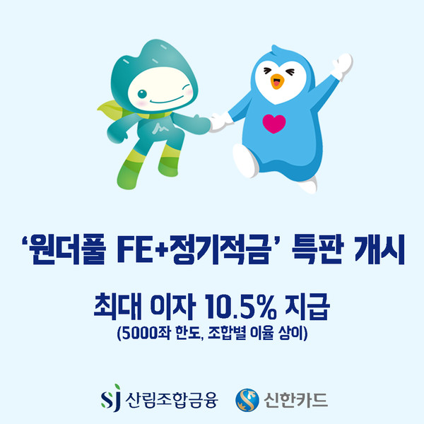 SJ산림조합은 지난 5일 최대 10.5% 이자를 지급하는 ‘SJ원더풀FE(Fando, Edition) 플러스 정기적금’ 상품을 선착순 5000좌 한도로 판매한다고 밝혔다.