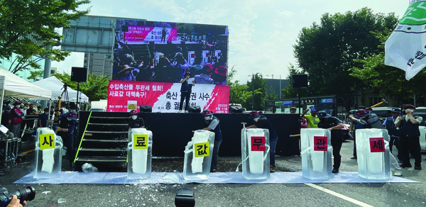 비대위는 이날 집회에서 △수입 축산물 무관세 즉각 철회 △사료가격 안정대책 수립 △수입 무관세 축산물 유통정보 공개 △국방부 군급식 경쟁입찰 철회를 요구했다.