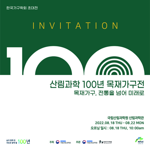 국립산림과학원은 산림과학 100년을 기념해 오는 22일까지 산림과학관 특별전시실에서 ‘산림과학 100년 목재가구전 – 목재가구 전통을 넘어 미래로’를 개최한다고 밝혔다.