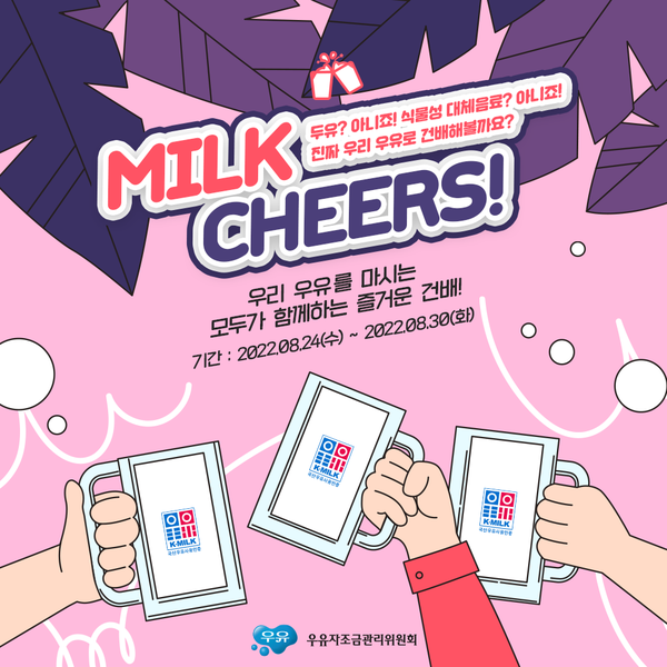 ‘밀크 치어스(MILK CHEERS)! 맛있다 우리 우유!’라는 주제로 실시되는 이번 이벤트는 식물성 대체음료나 수입 멸균유와는 비교할 수 없는 국산 우유만의 신선함, 안전성, 품질 등의 우수한 가치를 알리기 위한 목적으로 실시하는 대국민 캠페인이다.