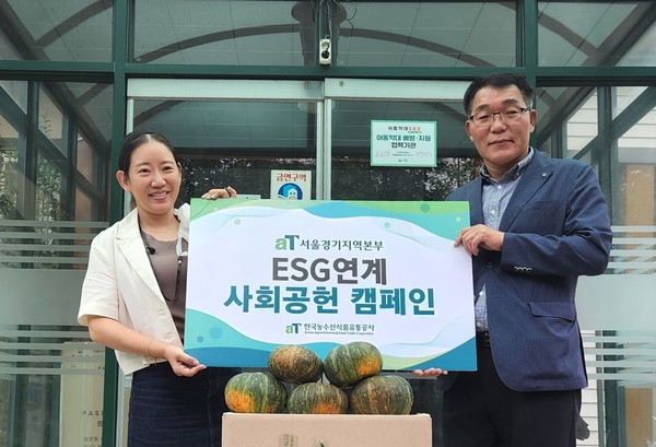 한국농수산식품유통공사(aT) 서울경기지역본부는 추석 명절을 맞아 지난 25일 경기 성남 소재 판교종합사회복지관과 경기 의왕 소재 아동보호 시설인 명륜보육원에 제주산 단호박을 전달했다.