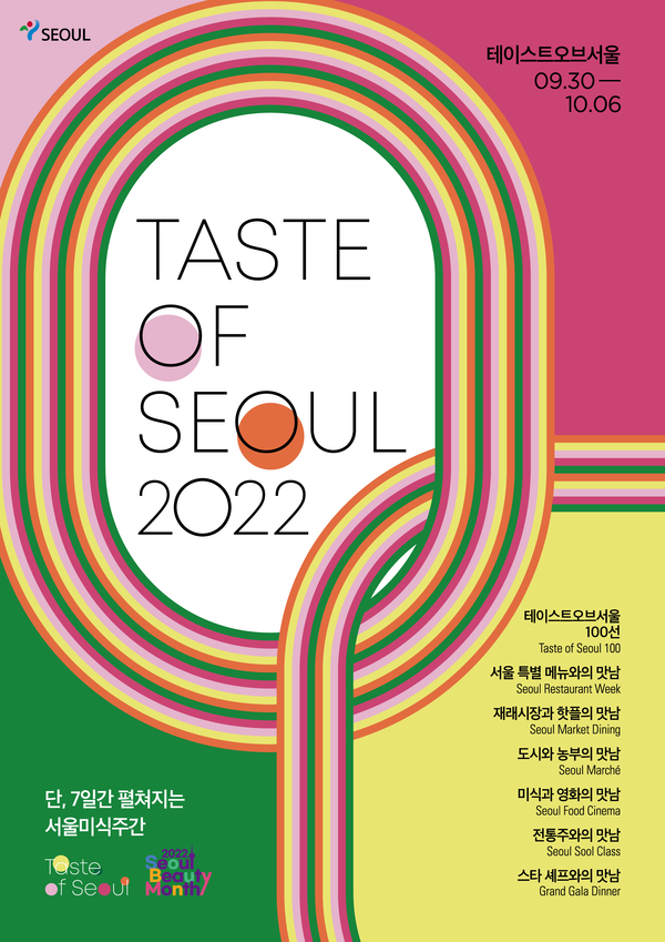 서울의 풍성한 먹거리, 볼거리, 즐길거리 등, 서울의 맛을 새롭게 만나보는 ‘2022 서울미식주간’이 ‘맛있는 만남, 맛남’을 주제로 오는 30일부터 다음달 6일까지 세빛섬, 문화비축기지를 비롯한 서울 곳곳에서 열린다.