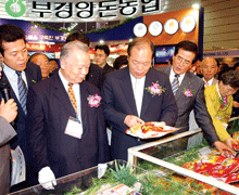 15개국 160여 업체가 참가한 가운데 지난 3일부터 6일까지 서울 COEX에서 열린 2003한국국제축산박람회는 소비자를 전면으로 앞세우는 변신을 해 호평을 얻었다. 사진은 왼쪽 2번째부터 민주당 이용삼 국회의원, 김남용 한국낙농육우협회장, 김영진 농림부장관, 송석우 농협중앙회 축산경제대표,등이 전시장을 둘러보는 모습.