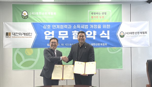 대한산란계협회(회장 안두영)가 소득세법 개정 추진을 위해 대현회계법인과 지난 12일 업무협약을 체결했다.