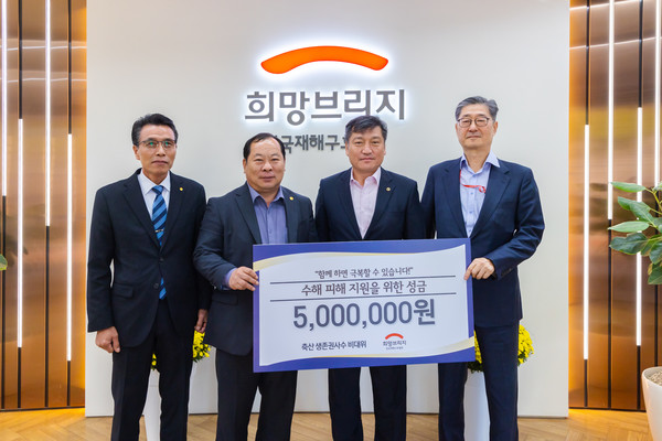 축산 생산자 단체가 최근 수해와 태풍 피해극복을 위해 희망브리지 전국재해구호협회(회장 송필호)에 성금 500만 원을 기탁했다.