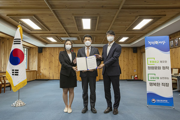 이번 결의식에서는 전 직원이 적극적으로 참여하는 과학원 갑질 근절 실천 결의 선언문을 채택했으며 △부당한 요구·처우 금지 △상호존중 행복한 직장문화 조성 △생활 적폐 청산 △민간분야 공유 확산 노력 등의 내용을 담았다.