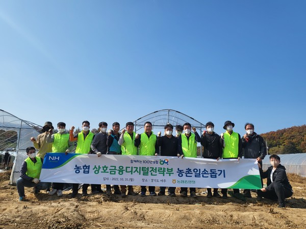 농협 상호금융디지털전략부 임직원들은 지난달 31일 경기도 여주시 관내 고령·영세농가를 찾아 일손돕기<사진>를 실시하고 농업 현장의 목소리에 귀기울이는 시간을 가졌다.