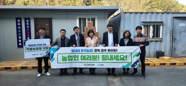 경농이 올해 태풍 힌남노의 직접적인 피해를 입은 경북 경주시 작목반과 농가에 피해 복구를 위한 작물보호제를 전달하며 지역사회 공헌에 힘을 보탰다.