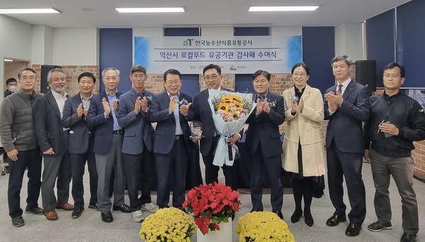 한국농수산식품유통공사(aT)는 지난 16일 ‘농축산물 할인지원사업’을 통해 소비자 물가부담 경감에 기여한 공로로 익산시장으로부터 감사패를 받았다.