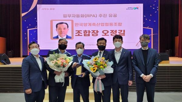 한국양계농협(조합장 오정길)은 농협중앙회가 개최한 ‘2022 디저털혁신 위크’에서 선도적 역할 수행과 업무자동화(RPA) 추진에 기여한 공을 인정받아 업적 우수상 표창을 수상했다고 최근 밝혔다.