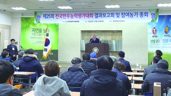 한국종축개량협회(회장 이재윤, 이하 종개협)는 지난 22일 안성축협 대회의실에서 ‘제25회 전국한우능력평가대회 결과보고 및 참여농가 총회’를 개최했다.