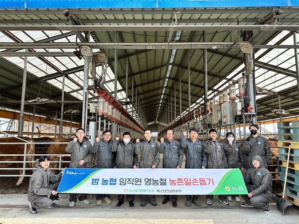 이날 일손돕기에 참여한 임직원들은 농촌 고령화로 인한 일손 부족과 한우 가격하락으로 어려움을 겪고 있는 축산농가를 위해 시설 소독, 축사 환경 정비, 건초사료 운반·정리 등을 하며 구슬땀을 흘렸다.