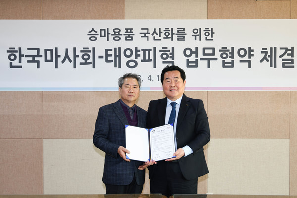한국마사회는 지난 12일 승마용품 국산화를 위해 35년간 승마용품을 제작한 태양피혁과 업무협약을 체결했다.