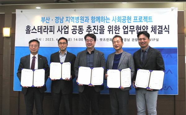 이날 협약식에는 송대영 마사회 부산경남지역본부장과 서덕웅 부산노인전문제3병원 대표이사, 정 근 온종합병원그룹 원장, 신진규 한사랑병원 대표원장, 방선휘 휘림한방병원 병원장 등 관계자들이 참석해 다자간 협약과 교류를 약속했으며 3000만 원 규모의 공동기금도 조성하기로 했다.