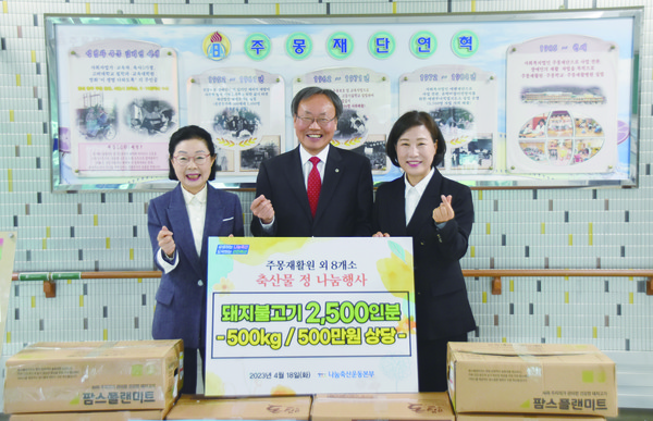 (사)나눔축산운동본부는 장애인에 대한 이해와 잘못된 인식 개선을 위해 제정된 장애인의 날(4월 20일)을 맞아 지난 18일 주몽재활원에서 축산물 정 나눔행사를 실시했다.