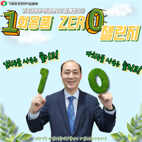 가축위생방역지원본부(본부장 위성환)는 지난 23일 일상 속 일회용품 사용 줄이기 실천 운동인 ‘일회용품 제로 챌린지’에 동참했다고 밝혔다.