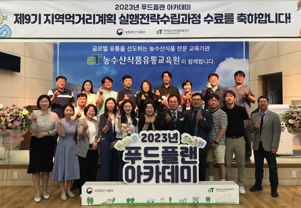 농림축산식품부와 한국농수산식품유통공사(aT)는 2일 경기 수원시 농수산식품유통교육원(교육원)에서 올해 푸드플랜 아카데미 ‘제9기 지역먹거리계획 실행전략 수립과정’ 수료식을 개최했다.