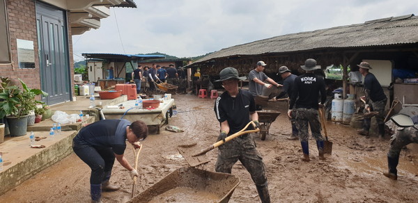지난 14일과 15일 집중된 폭우에 극심한 피해를 본 군은 지난 16일부터 긴급 복구에 총력을 기울이고 있다. 지금까지 복구작업에 투입된 인력은 2061명, 장비 283대에 이른다.