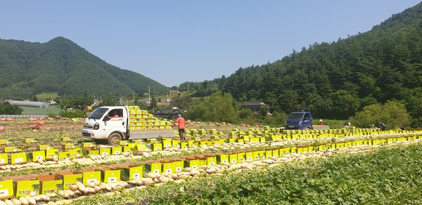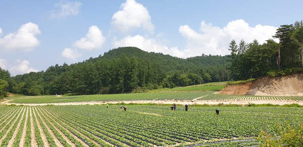 하지만 다음달 무 작황이 마냥 낙관적인 것만은 아니다. 폭염, 호우에 이어 병해충 발생 우려가 더해지고 있기 때문이다. 출하작업이 한창인 해발 500~600m 지대의 무밭에서 포장된 상자들 사이로 머리 부분이 녹아내린 몇몇 무들이 눈에 띄기도 했다. 호우 직후 이어진 더위로 출하가 불가능할 정도로 무가 손상된 것이다.