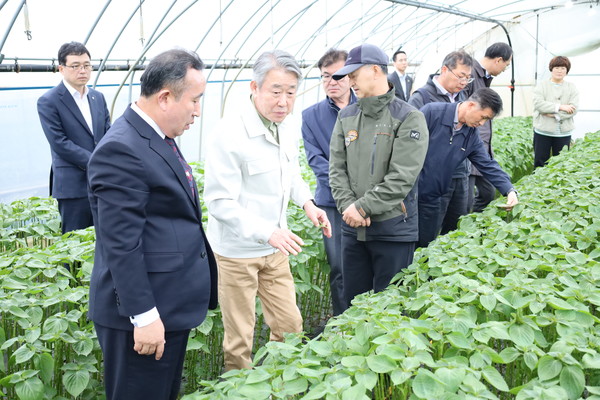 강호동 농협중앙회장은 지난 4일 일조량 부족으로 생육부진 피해를 입은 대구 동구 소재 깻잎 생산농가를 찾아 현장을 점검하고 범농협 차원의 지원책을 발표했다.