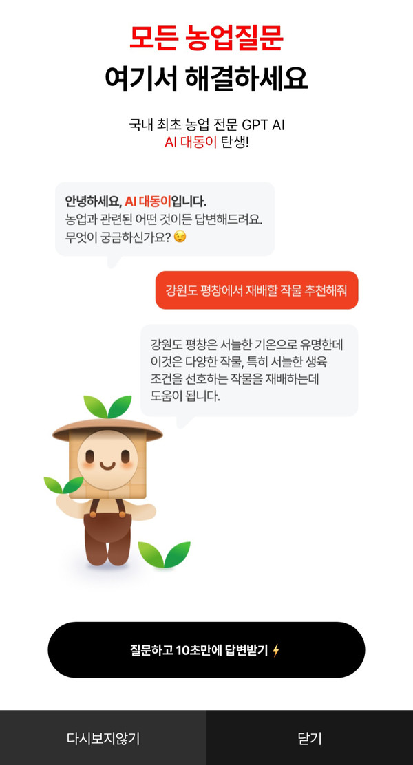 대동은 일반 농업인부터 도시 농업인까지 다채널 검색 없이 필요한 맞춤 농업 정보를 AI대동이를 통해 단시간에 쉽게 얻을 수 있어 농업 효율성이 증대될 것으로 보고 있다.