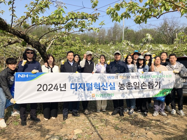 농협중앙회 디지털혁신실과 농협경제지주 농산물도매부는 지난 19일 농촌 현장에서 일손을 도우며 구슬땀을 흘렸다.