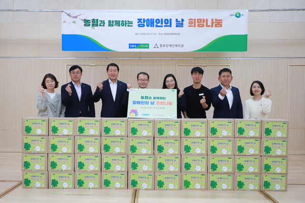 여영현 농협상호금융 대표이사는 4월 20일 장애인의 날을 앞두고 지난 17일 임직원과 함께 서울시 종로구 소재 종로장애인복지관을 찾아 우리 농산물 꾸러미 100상자와 쌀 1톤을 후원했다.