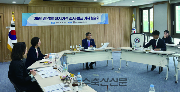 축평원은 지난 25일 축평원 본원 4층 회의실에서 ‘권역별 계란 산지가격 발표 관련 기자설명회’를 갖고 계란 산지가격 조사 발표 체계 등을 설명했다.