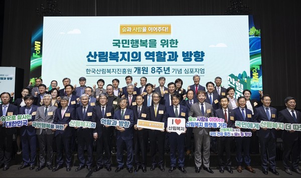 한국산림복지진흥원이 지난달 25일 대전 호텔ICC에서 개최한 개원 8주년 기념 심포지엄에선 산림복지·치유산업의 활성화와 이를 통한 지역 상생 발전 방안에 대해 다양한 의견들이 논의됐다.