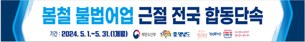 충남도(도지사 김태흠)는 봄철 어패류 산란기를 맞아 수산자원의 지속 가능한 이용기반 조성 추진과 수산자원 보호를 위해 5월 한 달간 불법어업 전국 합동단속을 실시한다고 1일 밝혔다.