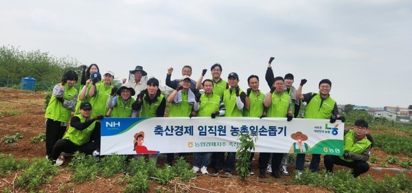 농협경제지주 축산유통부 직원 17명은 지난달 30일 영농철 일손 부족과 인건비 상승으로 어려움을 겪고 있는 경기 김포시 하성면 소재 농가를 찾아 농촌 일손돕기 활동을 실시했다.