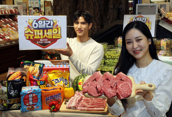 5월 가정의 달을 맞아 대형마트들이 우리 농축산물 할인행사를 진행하며 고객 유치에 나서고 있다. 사진은 이마트가 지난 1~6일 한우 등심과 돼지고기, 계란 등을 40~50% 할인된 가격에 판매한 ‘슈퍼세일’ 행사 모습.