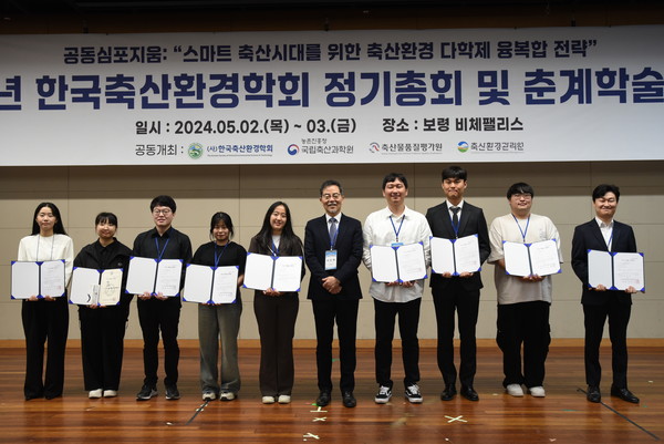 한국축산환경학회는 지난 3일 충남 보령 비체팰리스에서 춘계학술대회를 통해 축산환경 관련 구두·포스터 발표 중 12점에 대해 시상식을 가졌다.