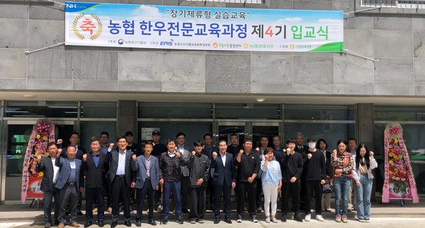 거창축협(조합장 박성의, 사진·앞줄 왼쪽부터 여덟 번째)은 지난 8일 거창축협 한우 전문교육센터에서 장기체류 형 실습교육 ‘농협 한우전문교육과정 4기 입교식’을 개최했다.