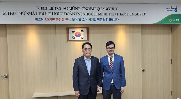 농협중앙회 지준섭 부회장은 지난달 30일 서울시 중구 농협중앙회 본관에서 부이 꽝 후이 호치민 공산청년단 제1서기를 만나 양국 청년농업인 육성방안과 농업분야 상호발전 방향에 대해 논의했다.