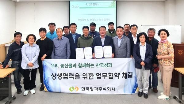 한국청과는 전남 영암 신북농협과 업무협약을 맺고 산지 지원 확대, 수취가격 제고 등을 위해 함께 노력하기로 손잡았다.