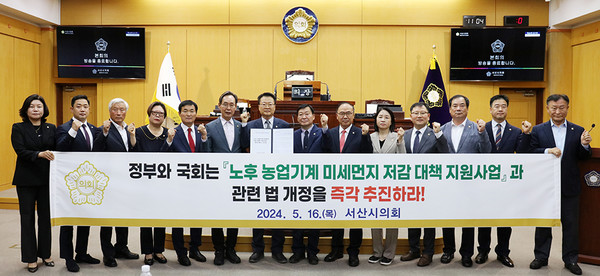 이에 김 의원과 서산시의원 일동은 정부와 국회에 ‘노후 농업기계 미세먼지 저감 대책 지원사업’을 즉각 재개하고, ‘농업기계화 촉진법’을 비롯한 관련 법 개정 추진을 촉구했다.