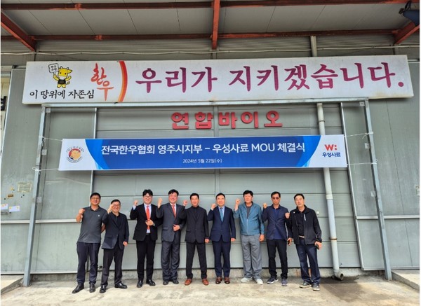 우성사료(대표이사 한재규)는 지난 22일 전국한우협회 영주시지부(지부장 박찬욱)와 상호업무협약(MOU) 체결식을 진행했다.