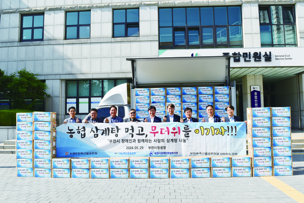 (사)나눔축산운동본부와 농협 부천축산물공판장, 협력사 자율모임 단체인 ‘부천과 축산물공판장을 사랑하는 사람들의 모임(이하 부축사모)’은 지난달 29일 부천시청에서 관내 장애인종합복지관을 통해 부천시 장애인에게 힐링캠프 지원금 500만 원과 가정의 달 맞이 삼계탕 1500만 원 상당을 전달했다.