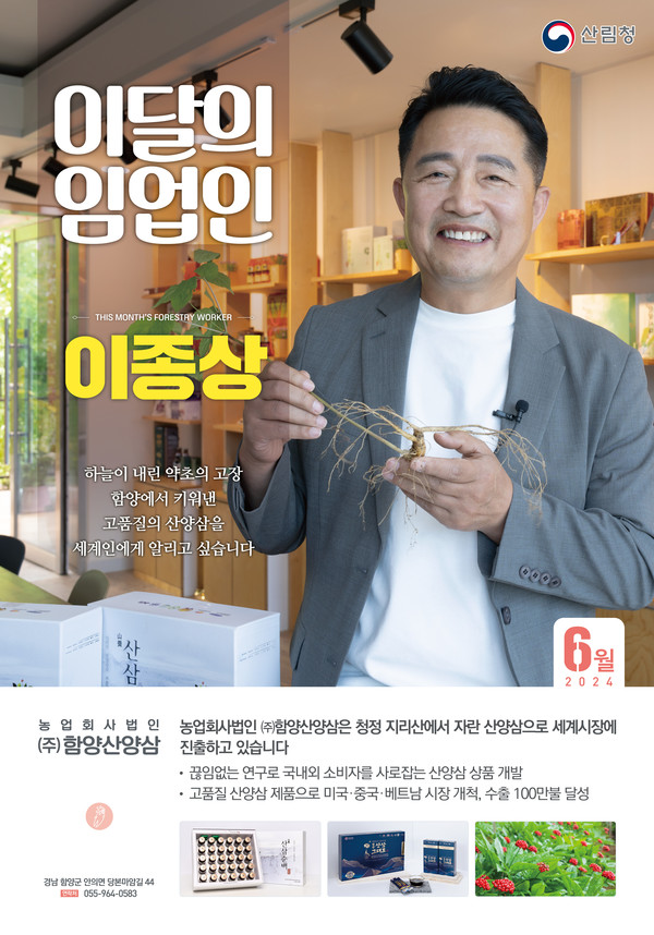 6월 이달의 임업인에 경남 함양에서 산양삼을 수출하는 이종상 ㈜함양산양삼 대표가 선정됐다.