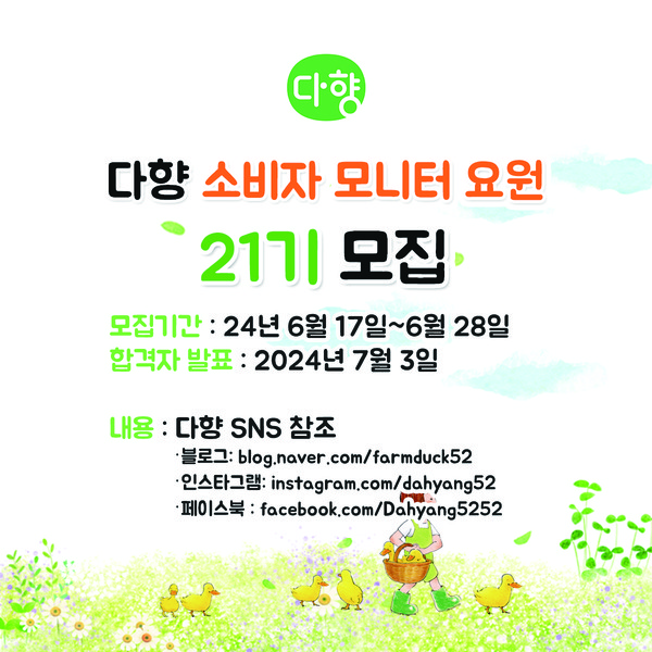 다향이 지난 17일부터 오는 28일까지 식품업계에 새로움을 선사할 ‘소비자 모니터 요원 21기’를 모집한다.