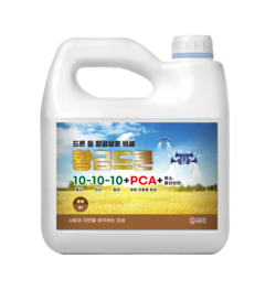 황금드론은 적은 양으로도 넓은 지역에 살포가 가능한 액상비료다. 완전히 용해된 액체 상태로 물에 녹일 필요가 없고, 노즐 막힘이 없어 사용이 편리하다.
