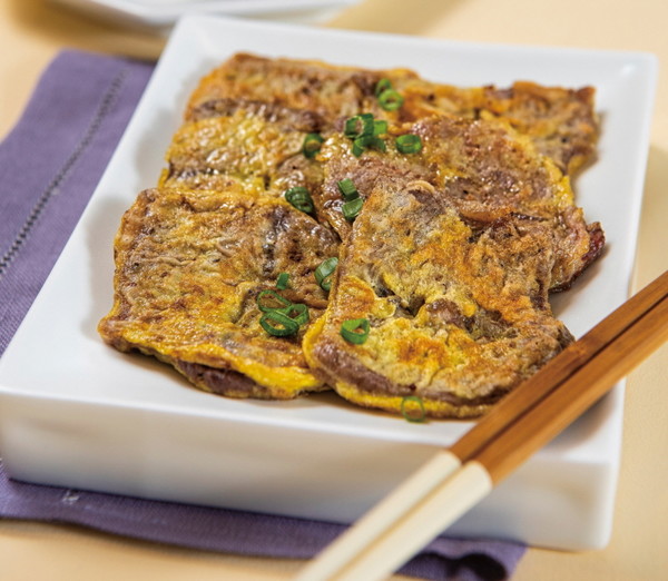 비 오는 날에는 기름진 전이 빠질 수 없다. ’한우 육전‘은 어떤 부위로도 쉽게 만들 수 있어 비가 올 때도 제격인 음식이다. 얇게 썰어진 홍두깨살, 우둔살, 보섭살 등 원하는 부위를 선택해 소금과 후추로 간한 뒤 부침가루, 계란물을 순서대로 묻히고 기름에서 충분히 지지듯 구워주면 완성이다.