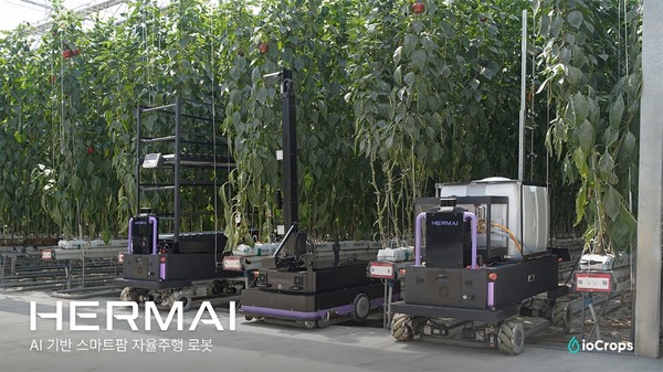 스마트농업 스타트업 아이오크롭스(주)는 최근 온실 자율주행 로봇인 헤르마이(HERMAI) 방제·운반 로봇 2종을 출시해 완전 자율화된 스마트농장 구축에 한 발짝 더 다가섰다.