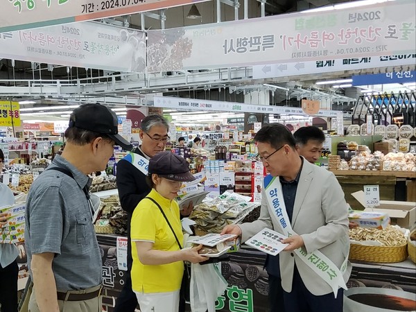 농협경제지주와 농협 약용작물전국협의회는 지난 11일 농협 하나로마트 성남점에서 ‘약용작물로 건강한 여름나기’ 특판행사 기념식을 개최하고 기념품과 홍보물을 나눠주며 국산 약용작물의 효능을 알렸다.