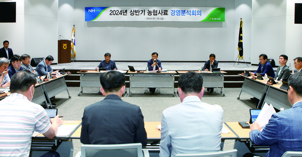 농협사료는 지난 19일 강동구 본사에서 임원과 사무소장 등 임직원이 참석한 가운데 상반기 경영분석 회의를 개최했다.