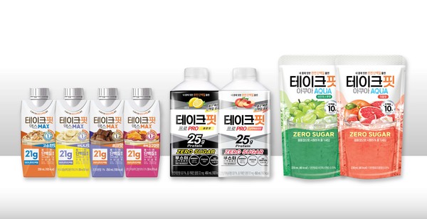 현재 시중에 판매 중인 테이크핏 음료는 △250ml ‘테이크핏 맥스’ 4종 △아르지닌과 카페인을 첨가해 운동 전에 마시면 효과적인 450ml ‘테이크핏 프로’ 2종 △얼음컵에 담아 마실 수 있는 파우치 형태의 230ml ‘테이크핏 아쿠아’ 2종 등 총 8종이 있다.