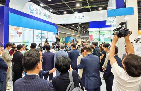 이 중 시그닛 대표 제품인 저압식 포그노즐 ‘에어포그’와 에어포그 자동화시스템 ‘포그닛’, ‘복합환경제어기’가 특히 관람객들의 이목을 끌었다.